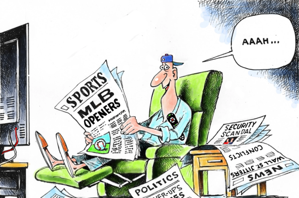 Come da prassi ho raccolto i cartoons dei tanti disegnatori statunitensi che con le loro matite fissano i momenti salienti delle stagioni della MLB. Anche il 2018 è stato ricco di avvenimenti che sono iniziati nell'offseason e hanno continuato fino alla fine della World Series. Durante l'offseason i Cleveland Indians hanno deciso, a mio parere giustamente, di smettere di usare il logo Chief Wahoo sulle loro uniformi a partire dal 2019. Citando un obiettivo di diversità e inclusione, il Commissioner Manfred ha detto in una dichiarazione fornita al New York Times, che l'organizzazione degli Indians "alla fine ha concordato con la mia posizione che il logo non è più appropriato per l'uso sul campo nella Major League Baseball, e apprezzo il Presidente Lawrence J. Dolan che ha riconosciuto che rimuoverlo dalla divisa all'inizio della stagione 2019 è la strada giusta". Sicuramente in previsione del coronamento della storica decisione la MLB aveva deciso nel 2017 di assegnare l'All Star Game 2019 proprio a Cleveland. L'inverno è stato lungo per noi tifosi e abbiamo contato i giorni che ci separavano dall'inizio dello spring training. I tests dello spring training fanno sognare i tifosi sperando che le loro franchigie possano arrivare alla postseason. Le formazioni che nel 2017 erano arrivate alla postseason sono riuscite a ripetersi vedi Boston Red Sox, New York Yankees, Cleveland Indians, Houston Astros, Washington Nationals, Chicago Cubs e i Los Angeles Dodgers. Altre franchigie invece sono terminate nelle parti basse delle division tra cui, per menzionare le più blasonate che negli anni precedenti avevano stazionato sempre nelle zone alte, i Texas Rangers, Kansas City Royals, New York Mets, San Francisco Giants e St. Louis Cardinals. A partire dalla stagione 2018, MLB ha implementato nuove regole di gioco, e nel 2018 viene introdotta la limitazione del numero di visite sul monte per ogni squadra a sei per nove inning e una visita aggiuntiva per ogni extra inning giocato. Per fortuna, la regola tanto discussa, anche nella precedente offseason, relativa alla volontà di eliminare lo shift difensivo non è andata in porto come l'introduzione del DH nella NL. Durante l'offseason cadono le teste di alcuni manager delle franchigie che nella passata stagione non erano riusciti a produrre risultati. Escono di scena Brad Ausmus per i Tigers, John Farrell dei Red Sox, Dusty Baker dei Nationals e Joe Girardi degli Yankees per contratti non rinnovati o defenestrati. Ma anche in piena stagione tre manager vengono sostituiti per un inizio di stagione rovinosa: Bryan Price dei Reds, Mike Matheny dei Cardinals e Jeff Banister dei Rangers. La regular season 2018 della Major League Baseball è iniziata il 29 marzo e si è conclusa il 1° ottobre, prolungando una giornata per le partite di tie-break che hanno deciso i vincitori delle division della National League Central e National League West. La postseason è iniziata il 2 ottobre. La World Series è iniziata il 23 ottobre e si è conclusa il 28 ottobre con i Boston Red Sox che hanno sconfitto i Los Angeles Dodgers in cinque partite per vincere il loro nono titolo delle World Series. L'inizio di stagione è stato avversato dal clima freddo e nevoso che ha colpito gran parte degli States e i dugout si sono stati trasformati simpaticamente in igloo. L'argomento più importante della stagione MLB del 2018 è stato l'arrivo nelle fila dei Los Angeles Angels del fenomenale pitcher, designated hitter e outfield giapponese Shohei Otani. Al secondo posto per importanza è stata la crescente tendenza dei giocatori ad azzuffarsi a vicenda. Dopo meno di un mese dall'inizio della stagione, ci sono già stati diversi combattimenti importanti che hanno portato allo svuotamento delle panchine e ai guanti che volano su tutto il diamante. I Padres e i Rockies hanno avuto una zuffa che si è conclusa con quattro giocatori sospesi. Nel frattempo, gli Yankees e i Red Sox si sono lanciati in una rissa in stile 2004. Le scazzottate hanno rimpiazzato le statistiche e sono esplose in tutto il campionato, innescando una serie di confuse conversazioni tra genitori e figli. ("Papà, le risse fanno parte del baseball?" "Penso che... forse?") L'ottimo andamento iniziale dei Boston Red Sox, Cleveland Indians e Huston Astros per l'AL e dei Washington Nationals, Chicago Cubs e Los Angels Dodgers per la NL sembrano dare ragione alle previsioni degli esperti. Infatti il trend positivo di queste franchigie continuerà per tutta la stagione con piccoli alti e bassi. Ma nell'AL West Division gli Oakland Athletics danno battaglia e lo stesso avviene nella NL East, Central e West dove sgomitano per la posizione di testa gli Atlanta Braves, Milwaukee Brewers e Colorado Rockies. Il 14 maggio 2018 la Corte Suprema degli Stati Uniti ha dichiarato incostituzionale la Legge Federale del 1992 che proibiva alla maggior parte degli stati di autorizzare le scommesse sportive. Uno di questi stati è l'Ohio, lo stato in cui la Big Red Machine di Rose ha dominato la National League del baseball negli anni '70. The Cincinnati Enquirer ha pubblicato un articolo su cosa potrebbe significare la decisione per Pete Rose. Da parte sua, la MLB ha rilasciato una dichiarazione in merito alla sentenza della Corte Suprema. Ha affermato che le scommesse sportive avranno un effetto profondo sul gioco, e la priorità del campionato rimane l'integrità del baseball. Chissà se dopo queste affermazioni Pete Rose potrà essere riportato dall'inferno dell'espulsione dal circuito alla destinazione finale, per i suoi molteplici record in carriera, nella Hall of Fame? Staremo a vedere. Subito dopo l'All-Star Game, giocato al National Park di Washington il 17 luglio, le franchigie che conducono le 6 Division sono: Red Sox primi seguiti dagli Yankees a 5,5 partite nella AL East; Indians in testa con i Twins al secondo posto a 7,5 partite nella AL Central; Astros che conducono, seguiti dai Mariners a 5 partite e Athletics a 7