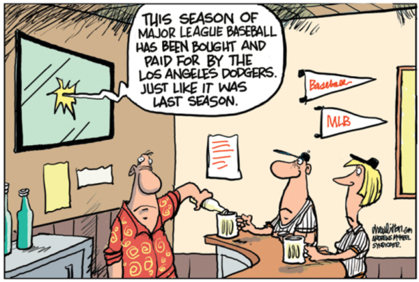 Non c’è season della MLB che non ci stupisca e superi la precedente per records, storie, performance, ecc. Anche il 2024 è stata una stagione stellare e come sempre cercherò di raccontarla aiutato dai cartoonists americani che puntualmente ne segnano lo scorrere dei mesi con le loro vignette dall’offseason alle World Series. A gennaio la Baseball Writers' Association of America ha annunciato i giocatori della Classe 2024 eletti nella Hall of Fame. Il magistrale terza base Adrián Beltré e il decorato ricevitore dei Twins Joe Mauer sono entrati entrambi nella National Baseball Hall of Fame al loro primo scrutinio della BBWAA, mentre il potente prima base dei Rockies Todd Helton è stato eletto al suo sesto tentativo. Il trio eletto dalla BBWAA si unirà all'eletto del comitato Contemporary Baseball Era Jim Leyland in una cerimonia di insediamento che si è tenuto il 21 luglio presso il Clark Sports Center di Cooperstown, NY. Prima ancora che Othani potesse scendere in campo per la sua prima partita ufficiale con i Dodgers era già di nuovo al centro dell’attenzione, questa volta per il suo potenziale coinvolgimento in uno scandalo sul gioco d’azzardo. In realtà, come poi è emerso dalle indagini, è risultato che il suo ex interprete, Ippei Mizuhara, si è dichiarato colpevole di frode bancaria e frode fiscale il 4 giugno dopo aver ammesso di aver rubato più di 16 milioni di dollari alla superstar dei Dodgers per, secondo i pubblici ministeri, "finanziare il suo vorace appetito per le scommesse sportive illegali". Mizuhara ha sottratto milioni di dollari dal conto bancario di Ohtani, a cui aveva accesso diretto, per finanziare le sue scommesse sportive, illegali in California. Nel gennaio 2024, John Angelos ha raggiunto un accordo da 1,7 miliardi di dollari per vendere gli Orioles a un gruppo guidato da David Rubenstein , nativo di Baltimora e fondatore di The Carlyle Group. Il gruppo include Cal Ripken, il gestore degli investimenti di New York Michael Arougheti, l'ex sindaco di Baltimora Kurt Schmoke, l'uomo d'affari Michael Bloomberg e il membro della NBA Hall of Fame Grant Hill. Per motivi fiscali, il gruppo ha acquisito il 40% della squadra dalla famiglia Angelos che avrebbe venduto il resto della quota di Peter Angelos dopo la sua morte. Peter Angelos è morto all'età di 94 anni il 23 marzo 2024; la sua morte è avvenuta quattro giorni prima che la vendita degli Orioles fosse finalizzata. Il 1° agosto 2024, il gruppo ha preso il pieno controllo della squadra. Dopo un inverno alla finestra per milioni di tifosi impazienti per l’inizio stagione e curiosi di vedere all’opera i propri idoli e le new entry famose, tra cui spiccano Juan Soto, passato dai Padres agli Yankees, o Teoscar Hernández dai Mariners ai Dodgers, o Sean Manaea, dai Giants ai Mets, o Chris Sale dai Red Sox ai Braves, giusto per fare qualche esempio calzante, è arrivato il tanto atteso sporing training. A febbraio sono stati pubblicati i calendari e questo ha significato che il baseball è tornato!Lo spring training è finalmente arrivato e le squadre della MLB hanno iniziato a presentarsi ai loro ritiri in Arizona e Florida con i lanciatori e i ricevitori dei Los Angeles Dodgers per primi e quelli dei San Diego Padres subito dopo. Prima dell'inizio della stagione regolare, ogni squadra ha giocato tra 27 e 34 partite di spring training (ad eccezione dei San Diego Padres e dei Los Angeles Dodgers , che hanno giocato una preparazione abbreviata di 21 e 22 partite rispettivamente, a causa delle loro partite della regular season a Seoul), a partire dal 22 febbraio. Oltre alle partite di allenamento primaverile, le squadre occasionalmente hanno giocato partite di esibizione con squadre non MLB, come squadre di Minor League Baseball, squadre indipendenti o squadre universitarie. Lo spring training si è concluso il 26 marzo, due giorni prima dell'Opening Day. Alcune franchigie hanno cambiato i managers dopo delle stagioni inconcludenti sia durante l’off season che durante la regular season. I Giants hanno licenziato Gabe Kapler per Bob Melvin; i Mets hanno sostituito Buck Showalter con Carlos Mendoza; i Cubs hanno fatto fuori David Ross per Craig Counsell. Alcuni manager si sono ritirati vedi Terry Francona dai Guardians o Dusty Baker dagli Astros. Durante la stagione i Withe Sox, in agosto, hanno licenziato Pedro Grifol sostituendolo ad interim con Grady Sizemore; nello stesso mese i Mariners si sono sbarazzati di Scott Servais per Dan Wilson; mentre a settembre i Reds hanno messo alla porta dopo sei stagioni David Bell per nientepopodimeno che Terry Francona. Tutte le 30 formazioni MLB, indistintamente, si sono presentate al nastro di partenza per centrare l’obiettivo di assicurarsi un posto nella post season. Le franchigie più titolate, che hanno speso un player payroll da capogiro per rinforzare i loro roster, sono decisamente più avvantaggiate rispetto ai teams che per varie ragioni non possono competere con i Mets ($305,624,274), Yankees ($303,322,047), Dodgers ($249,823,654), e a seguire Phillies, Astros, Rangers, Blue Jays, Braves, Cubs, Giants che si attestano oltre i 200.000.000 di $. Con un payroll sopra i 100.000.000$ ci sono Cardinals ($179,553,567), Red Sox ($176,458,748), Angels ($172,993,096), Padres ($161,937,554), White Sox ($142,995,900), Rockies ($142,571,000), Diamondbacks ($140,825,700), Mariners ($135,738,647), Nationals ($126,862,600), Twins ($124,077,590), Royals ($115,257,261), Reds ($106,441,547), Brewers ($105,833,094),Tigers ($103,834,833), Rays ($101,023,112). Le franchigie che hanno investito meno (vedi Marlins ($97,227,400), Orioles ($94,520,400), Guardians ($93,333,629), Pirates ($85,760,000) e Athletics ($60,503,298) si trovano già in difficoltà e solo invertendo la tendenza sul campo potranno dire la loro alla fine delle 162 gare da disputare. La stagione del baseball che ha ritrovato un aumento di spettatori in questi ultimi anni, dopo una flessione che sembr