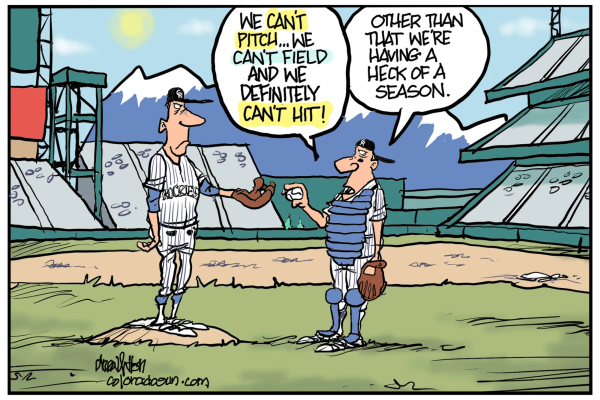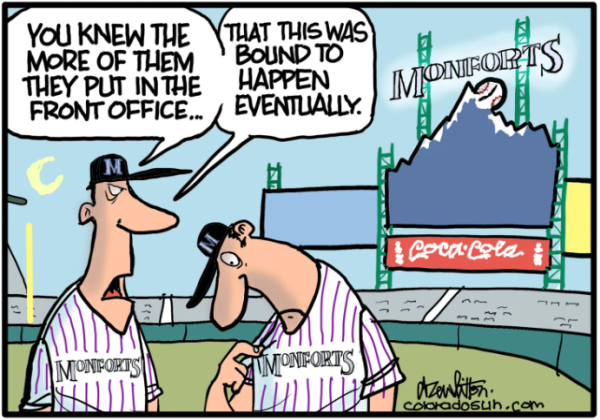 Come ogni anno ecco l'appuntamento con le matite graffianti dei cartoonist sportivi americani. Ogni stagione della MLB ha dell'incredibile! La stagione del 2012 non si è smentita ed è iniziata col botto già nell'off-season. Si viene a sapere a dicembre del 2011 che Ryan Braun, stella dei Milwaukee Brewers e vincitore dell'MVP della NL, era stato trovato positivo al testosterone in un controllo effettuato ad ottobre e che avrebbe dovuto scontare 50 partite di sospensione. Poi con un secondo test effettuato da un laboratorio indipendente i valori ritornarono a posto, grazie anche ad un cavillo sulla gestione della provetta per le analisi. Alla fine la pratica Braun si risolve con il collegio arbitrale della MLB che accetta il ricorso del giocatore e tutto finisce a tarallucci e vino. Alla fine dell'anno arriva la notizia di due grossi colpi di mercato che per l'ennesima volta ribadiscono, per chi non l'avesse ancora capito, che i giocatori sono più attaccati al denaro che alla squadra: Albert Pujols lascia i Cardinals per accasarsi a Los Angeles con gli Angels per 250 milioni di $, e Prince Fielder lascia i Milwaukee Brewers per i Detroit Tigers per 214 milioni di $. Per fortuna comincia lo spring training e tutte e 30 le franchigie completano i roster, affilando gli attrezzi per darsi battaglia e raggiungere un posto nella post season. Alcune formazioni, tra le più conosciute, hanno cambiato lo skipper, vedi Miami e Boston; I primi chiamano Ozzie Guillen, ex manager degli White Sox dal carattere focoso e senza peli sulla lingua, e i secondi si avvalgono di Bob Valentine, da alcuni anni commentatore dell'ESPN e fuori dal giro della MLB dal 2002 - l'ultima squadra allenata sono stati i Chiba Lotte Marines con cui ha vinto un titolo della Nippon Professional Baseball nel 2005. Magic Johnson, l'ex stella dei Lakers, a capo di una cordata acquista e salva i gloriosi Los Angeles Dodgers, in bancarotta con l'ex proprietario Frank McCourt. La regular season inizia con l'opening day e si preannuncia interessante anche se scoppia la polemica dei biglietti troppo cari. Si celebra il 100° anniversario del Fenway Park e per l'occasione i Red Sox e gli Yankees giocano con le divise del 1912. Come sempre le due squadre di Chicago vivono vite sportive differenti anche se all'inizio incontrano le stesse difficoltà; i Cubs stazioneranno in fondo alla cantina mentre gli White Sox saranno al vertice, rimanendo per un buon periodo al primo posto. Si mettono in luce i Nationals e gli Orioles che disputeranno una grande stagione. Tra le franchigie più famose i Boston Red Sox, da subito, fanno intravvedere che sarà un'annata difficile con Bobby Valentine, che inimicandosi la squadra, sarà parte determinante di questa débâcle. Ozzie Guillen fa scoppiare un caso senza precedenti nella Miami anti castrista, profferendo in un'intervista la sua simpatia per Fidel Castro. Verrà sospeso dalla MLB, sotto la pressione della forte comunità cubana, e pagherà alla fine con gli scarsi risultati dei suoi Marlins. Iniziano ad arrivare anche i primi record. Ad aprile arriva il 21° perfect game realizzato da Philip Humber dei Chicago White Sox. Passano due mesi e Matt Cain dei San Francisco Giants fa suo il 22° perfect game. Ad agosto Félix Hernández dei Seattle Mariners centra il 23° perfect game. Mai nella storia della MLB erano stati realizzati tre perfect game nella stessa stagione. A maggio, Josh Hamilton dei Texas Rangers diventa il 16° giocatore nella storia della MLB a battere quattro fuoricampo in una partita. Dopo il Midsummer Classic, caratterizzato dall'apparizione di giovani lanciatori, già si intravede quali saranno le squadre proiettate alla postseason: Yankees, Orioles, Detroit, White Sox, Athletics e Texas per l'AL; Nationals, Braves, Reds, Cardinals, Giants per la NL. I Dodgers rimangono primi fino ad agosto e poi scivolano definitivamente al secondo posto dietro ai Giants. E' bufera nella franchigia dei Red Sox. I giocatori sono ai ferri corti con Valentine e il management ha cominciato lo smantellamento della vecchia gloriosa quadra; Kevin Youkilis e Adrian Gonzalez sono alcuni dei pezzi da 90 che se ne vanno. I Pirates arrivano alla testa della Central Division ma, ahimè, è solo per una settimana. Ad agosto viene trovato positivo al testosterone Milky Cabrera, MVP dell’All-Star Game del 2012, e fermato per 50 partite. A differenza di altri (vedi i tanti attori di questo racconto) si dichiara umilmente colpevole e pur avendo scontato la squalifica, i Giants lo tengono fuori anche nella postseason per poi lasciarlo libero. Roger Clemens viene dichiarato non colpevole, grazie ad un cavillo legale, per aver mentito al Congresso testimoniando di non aver mai preso sostanze dopanti: fine della querelle durata anni! Il 13 agosto muore Johnny Pesky, stella dei Boston Red Sox degli anni '50, e tutto il movimento piange uno dei grandi giocatori, lontano anni luce dalla steroid-era. Dopo il rush finale di settembre si aggiudicano le rispettive division dell'AL: Yankees, Athletics e Tigers, mentre la wild card se la giocano i Rangers e gli Orioles. Nella NL, Reds, Giants e Nationals vincono le loro division e Braves e Cardinals si giocano la wild card. Si chiude la regular season e inizia la post season con Miguel Cabrera, dei Tigers, che si aggiudica la Triple Crown, diventando il primo latino americano e la prima terza base a compiere questa impresa – L'ultimo ad aggiudicarsi il trofeo era stato l'esterno dei Boston Red Sox, Carl Yastrzemski, nel 1967. Gli Orioles battono i Texas nella partita secca di spareggio e vanno ad incontrare gli Yankees. Nella partita di spareggio tra Cardinals e Braves succede il fattaccio per una chiamata di infield fly dell'arbitro Sam Holbrook, in un momento topico della partita contro i padroni di casa. Il pubblico di Atlanta sconsideratamente getta in campo di tutto e ferma l'incontro per 19 minuti. Scuse da parte del presidente dei Braves, John Schuerholz, p