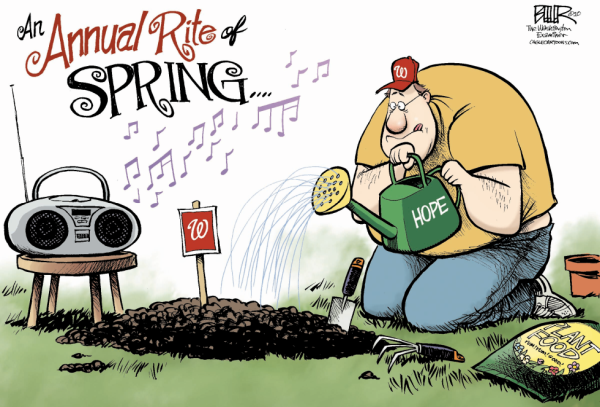 La stagione 2019 della MLB è da considerarsi, a mio modesto parere, tra le più spettacolari nella storia degli ultimi vent'anni sia per come si è conclusa che per i momenti salienti che l'hanno contraddistinta. Cercherò di raccontarvi i fatti più significativi aiutandomi come sempre con le vignette dei cartoonists americani che con grande arguzia hanno disegnato le vicende della stagione. Nell'offseason 2018 e inizio 2019 c'è stata la corsa per accaparrarsi i migliori giocatori free agency e le franchigie se li sono strappati a fior di milioni di dollari. Bryce Harper è stato corteggiato da Yankees, Astros, Cardinals, Dodgers a altri teams e solo durante lo spring training ha fatto la sua scelta. Il prezzo pagato per Bryce Harper ha toccato cifre impensabili. Se solo Harper avesse saputo come sarebbero finiti in gloria i suoi Nationals non so se avrebbe optato per andarsene da Washington rinunciando così alla montagna di dollari? Altri free agency invece non hanno trovano teams interessati ai loro servigi, soprattutto a causa della loro età. I 330 milioni sborsati dai Phillies per Harper è il più grande contratto totale non solo nella storia della MLB ma di tutto lo sport nordamericano, superando i 325 milioni di dollari pagati a Giancarlo Stanton il 27 settembre 2015 dai Marlins. Manny Machado ha accettato un contratto di 10 anni per 300 milioni di $ con i San Diego Padres. Mike Trout ha firmato una proroga di 10 anni per 360 milioni assicurando la sua carriera con i Los Angeles Angels fino alla pensione. I salari dei giocatori sono enormemente aumentati e questo ha aperto un dibattito, anche etico, tra i fans e gli addetti ai lavori vista anche la flessione di spettatori toccata dal baseball nel 2018 e il passaggio di testimone come Pastime Nazionale alla NFL da almeno un decennio. La domanda è dovrà si andrà a finire di questo passo? Come succede oramai da sempre c'è stato il defenestramento dei managers che non sono riusciti a far riprendere quota alle loro squadre e alla fine della regular season 2018 e durante l'offseason sono cadute le teste di Bryan Price dei Reds, Jeff Banister dei Rangers e Buck Showalter degli Orioles. Il 30 settembre 2018 Mike Scioscia, invece, dopo 19 anni come manager degli Angels ha deciso di ritirarsi lasciando il posto a Brad Ausmus. L'inverno è davvero troppo lungo e i fans scalpitano in questo periodo di inattività fantasticando in attesa di vedere le loro squadre di nuovo in azione e magari vincenti. Il 7 febbraio 2019 ci lascia una leggenda del baseball: Frank Robinson. Io che amo in particolar modo il baseball del passato sento che la scomparsa di questi grandissimi giocatori, tra l'altro uno dei miei idoli, impoverisce l'identità storica e romantica del nostro sport. Se ne va un grandissimo giocatore e il primo manager di colore della storia della MLB. Lo spring training riapre i cuori dei tifosi e già i media sportivi lanciano i loro pronostici per le formazioni che si batteranno nella post season. Si parla della squadra cenerentola dei Minnesota Twins e del team più deludente degli ultimi anni dei Cleveland Indians. Si individuano i futuri campioni dell'AL Est League nei New York Yankees; i campioni dell'AL Central nei Minnesota Twins e gli Houston Astros per l'AL West. I pronostici prevedono anche chi giocherà l'AL Wild Cards: Boston Red Sox e Tampa Bay Rays. Per la NL Est le previsioni danno favoriti i Washington Nationals e nella NL Central i favoriti sono i Milwaukee Brewers. I papabili della NL West sono i Los Angeles Dodgers. Per le formazioni che si batteranno per la NL Wild Card ci sono i Colorado Rockies e i New York Mets. Addirittura i pronostici prevedono che l'American League Championship Series si giocherà tra Astros e Yankees. La National League Championship Series vedrà Brewers contro i Dodgers. E per finire le World Series saranno tra Astros e Brewers. La stagione della Major League 2019 inizia il 20 marzo e termina il 29 settembre. Si festeggia il 150° anniversario del baseball professionistico, risalente alla fondazione dei Cincinnati Red Stockings nel 1869. La regular season inizia sotto la gragnola di fuoricampo da parte di tutti i teams. Continua il trend in crescita degli homerun stagionali degli ultimi 10 anni e singolarmente a maggio la MLB ha pubblicato i risultati di uno studio scientifico dettagliato sulle proprietà aerodinamiche della pallina, suggerendo che il recente picco di fuoricampo delle leagues potrebbe essere in parte dovuto a una posizione più centrata del nocciolo al suo interno. Tra l'altro la MLB il 5 giugno del 2018 aveva stretto una partnership con la società Seidler Equity Partners per acquistare Rawlings Sporting Goods Company, il fornitore di palline e caschetti da moltissimo tempo della lega nordamericana, per 395 milioni di dollari. La MLB aveva dichiarato di voler partecipare alla produzione di attrezzature sportive nel tentativo di ottenere un maggiore controllo sulla produzione delle sue palline da baseball ufficiali. Che le palline negli anni abbiano avuto un peso non indifferente nell'incremento del numero di fuoricampo è un dato di fatto. Il pitcher degli Astros Justin Verlander ha dichiarato, prima di iniziare come partente l'All-Star Game 2019 per l'AL a Cleveland, che la pallina da baseball che lancia per guadagnarsi da vivere è "It’s a f—ing joke" (un fottuto scherzo), usando un linguaggio molto più colorato di così. "Non importa chi sia il battitore, mi sento come se stessi camminando costantemente sul filo del rasoio, perché qualsiasi battitore può andare in campo opposto", ha detto Verlander, "Qualsiasi battitore può battere qualsiasi lancio in qualsiasi punto della zona strike". Il Commissioner Manfred ha recentemente riconosciuto la differenza tra le palline, ma ha negato che la League abbia avuto alcun coinvolgimento nel cambiare il loro design per creare più "offence" come sostengono i lanciatori. Ma per la cronaca proprio questa particolarità