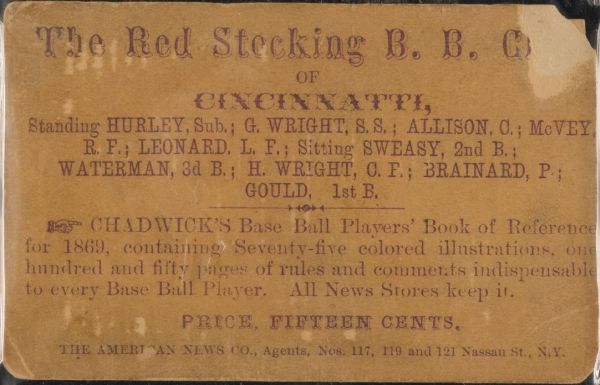Baseball card dei Red Stocking (B.B. Club Of Cincinnati del 1869, prodotta da Peck and Snyder