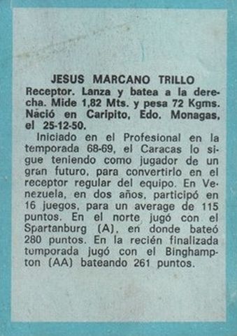 Baseball card di Jesus Marcano Trillo del 1970, del set Active Players, prodotta da Topps