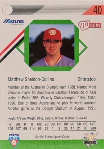 Baseball card di Matthew Sheldon del 1993, prodotta da Futera