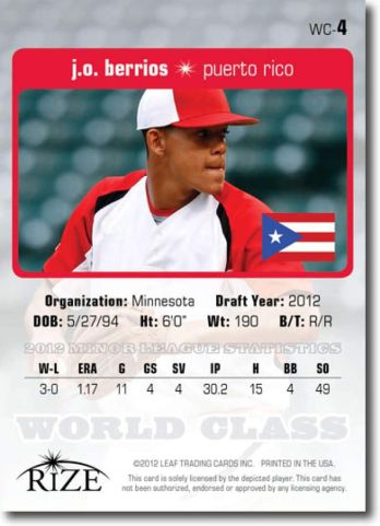 Baseball card di J.O. Berrios del 2012, prodotta da Rize