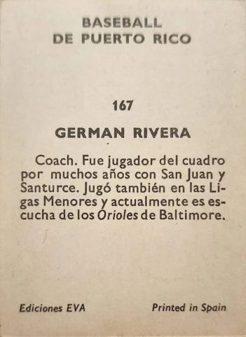 Baseball card di German Rivera del 1972, prodotta da Ediciones EVA