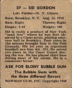 Dopo il 1941, le carte non sarebbero state prodotte in numeri significativi fino a pochi anni dopo la fine della guerra. Poi, la produzione bellica si trasferì ai beni di consumo civili del dopoguerra e nel 1948 la produzione di carte da baseball riprese negli Stati Uniti con le emissioni della Bowman Gum e della Leaf Candy Company.
