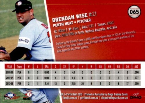Baseball card di Brendan Wise del 2013, prodotta da Dingo Trading Cards