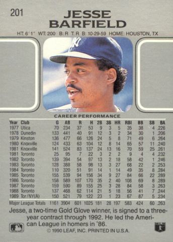 Baseball card di Jesse Barfield del 1990, del set Leaf, prodotta da Donruss