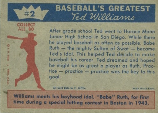Nel 1959, Fleer, un'azienda produttrice di gomme da masticare, firmò un contratto esclusivo con Ted Williams e vendette un set di figurine con la sua immagine. Williams si ritirò nel 1960, costringendo Fleer a produrre un set di carte Baseball Greats con giocatori in pensione.