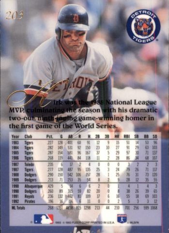 Baseball card di Kirk Gibson del 1993, del set Flair, prodotta da Fleer