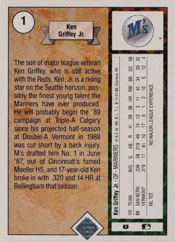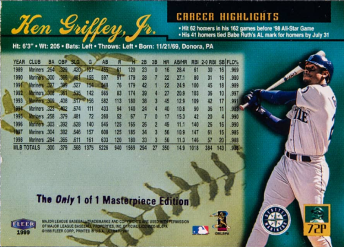 Baseball card di Ken Griffey JR. del 1997, del set Masterpiece Ultra, prodotta da Fleer