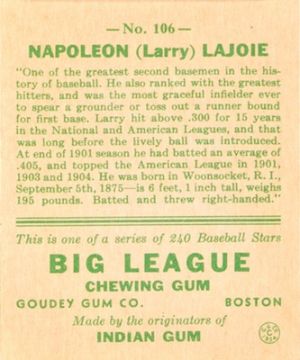 7 ⁄ 8 di pollici (6,0 per 7,3 cm), che Goudey stampò su fogli da 24 carte e distribuì durante l'anno. La maggior parte dei primi membri della National Baseball Hall of Fame appaiono in questo set.