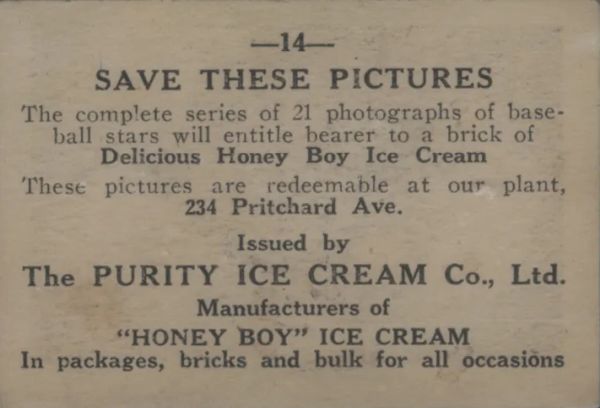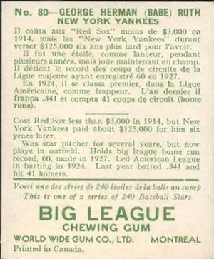 Baseball card di Babe Ruth del 1927, prodotta da Honey Boy Ice Cream