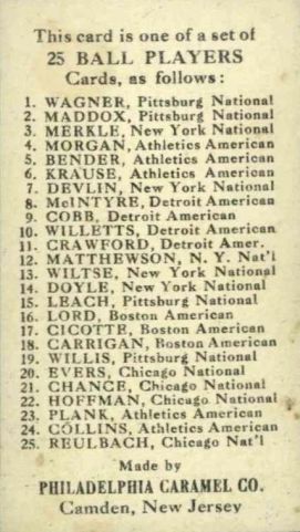 Baseball card di Fred Merkle del 1909, (Catalogo ACC - E95), prodotta da Philadelphia Caramel
