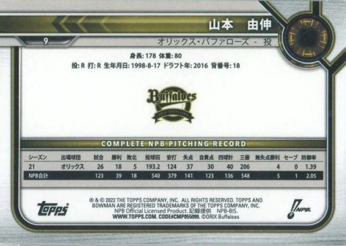 Baseball card di Yoshinobu Yamamoto del 2022, prodotta da