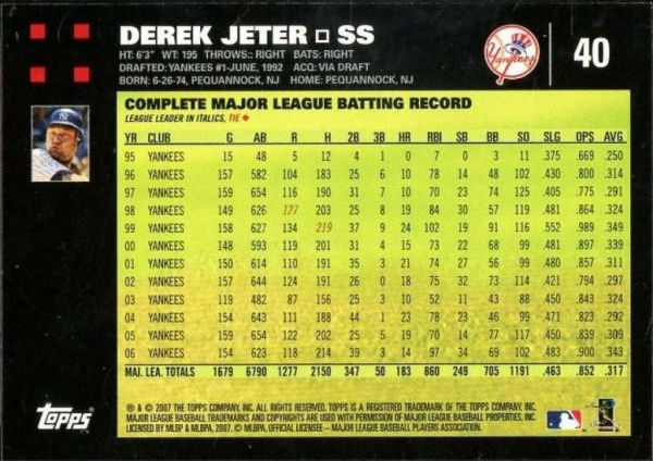Baseball card Derek Jeter del 2007, con George Bush e Mickey Mantle, prodotta da Topps