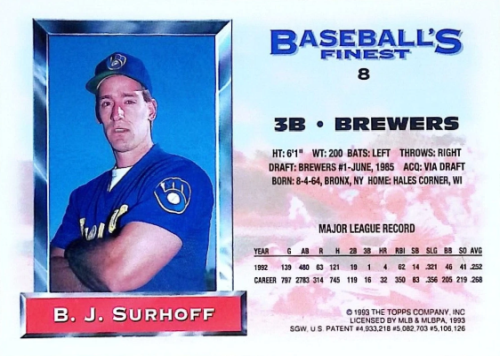 Baseball card di B.J. Surhoff del 1993, del set Topps Finest, prodotta da Topps