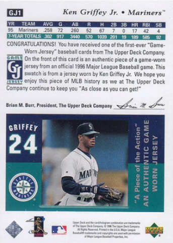 Baseball Card di Ken Griffey Jr. del 1997, del set Game Jersey, prodotta da Upper Deck
