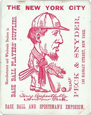 Queste venivano utilizzate da varie aziende per promuovere la propria attività, anche se i prodotti pubblicizzati non avevano alcun collegamento con il baseball. Nel 1868, Peck and Snyder, un negozio di articoli sportivi di New York, iniziò a produrre figurine raffiguranti squadre di baseball. Peck and Snyder vendeva attrezzature da baseball e le figurine erano un veicolo pubblicitario naturale. Le figurine Peck and Snyder sono talvolta considerate le prime figurine da baseball.